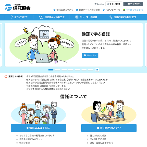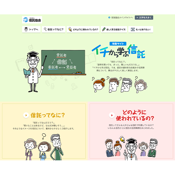ホームページにて、初心者向けに信託の仕組みや活用事例をわかりやすく解説した「イチから学ぶ信託」のページを新設。また、クイズ形式で理解度をチェックできるようにするなど、より親しみやすい内容とするための全面リニューアルを実施