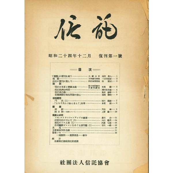 会報『信託』第1巻第1号発刊(大正13(1924)年第6巻第1号発行、以後休刊)